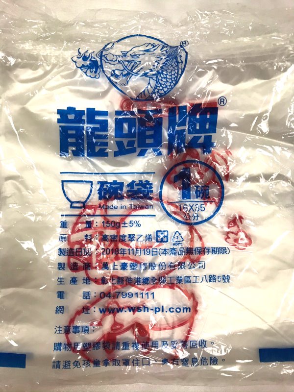 聯友食品免洗有限公司 -- 龍頭牌 碗袋1碗